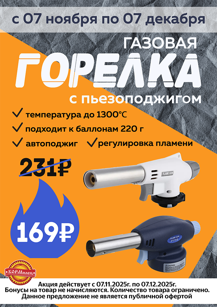 Горелка газовая с пьезоподжигом и регулировкой мощности в ассортименте