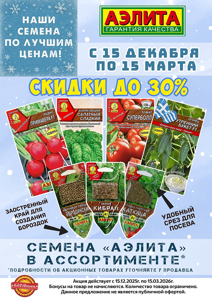 Семена "АЭЛИТА", участвующие в акции: