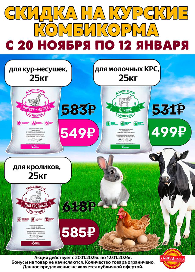- Комбикорм для кур несушек крупка (Курск) 25кг