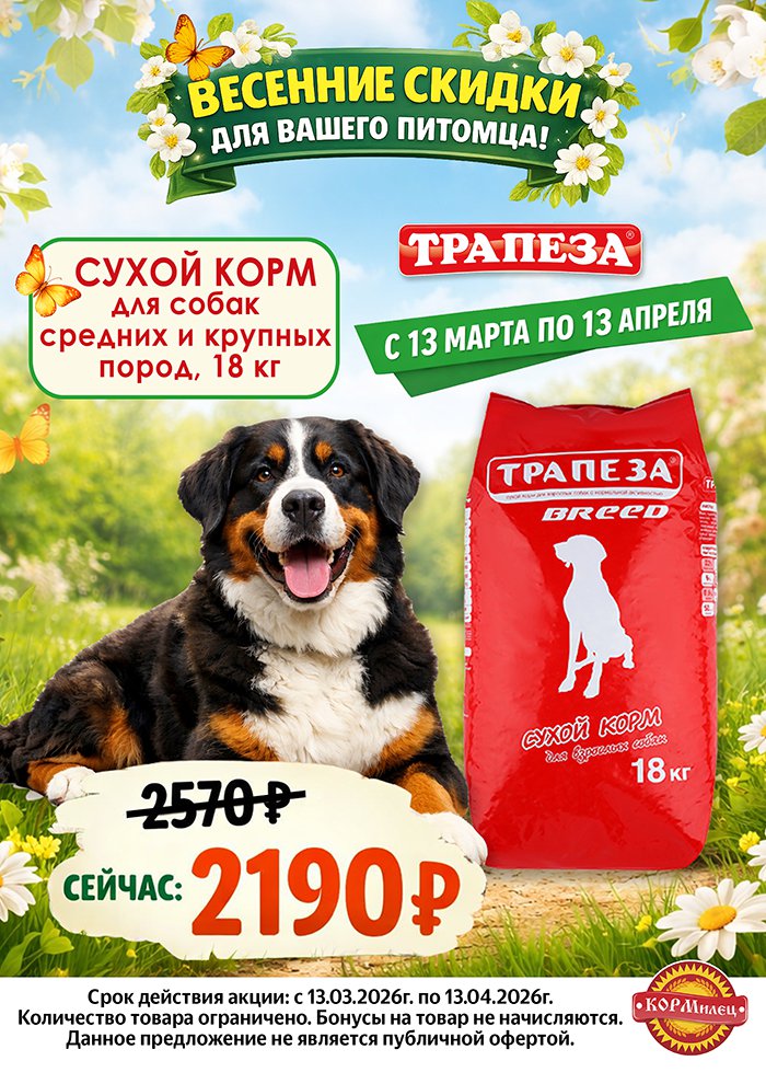 АКЦИЯ НА СУХОЙ КОРМ ТРАПЕЗА 18 КГ!