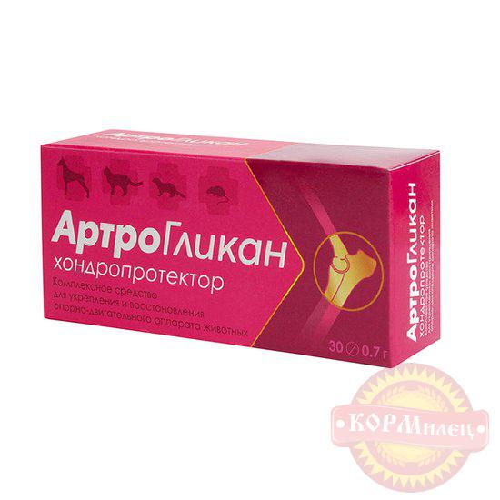 АРТРОГЛИКАН хондропротектор для укрепления и восстановления опорно-двигательного аппарата собак и кошек (30 таблеток).