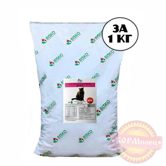 Сухой корм для кошек БИСКО. Пониженное содержание минералов (например, магния) в составе корма, снижает риск образования камней в почках.