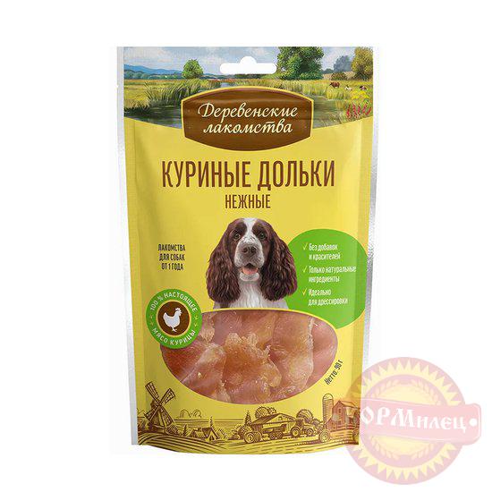 Эти нежные, сочные дольки из куриного мяса высшей категории станут любимым лакомством Вашей собаки.