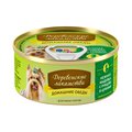 Мясные полнорационные консервы «ДОМАШНИЕ ОБЕДЫ» для собак – это питательно, вкусно и полезно. Только самое свежее мясо, только отборные и любимые Вашим четвероногим другом субпродукты, только самые полезные и богатые витаминами овощи входят в состав этого корма!