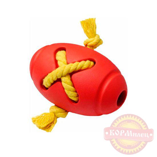 Игрушка в виде мяча для регби с канатом. Послужит увлекательным развлечением для вашего питомца, идеально подойдет для интерактивных игр в помещении и на открытом воздухе. Игрушка изготовлена из натурального каучука.
