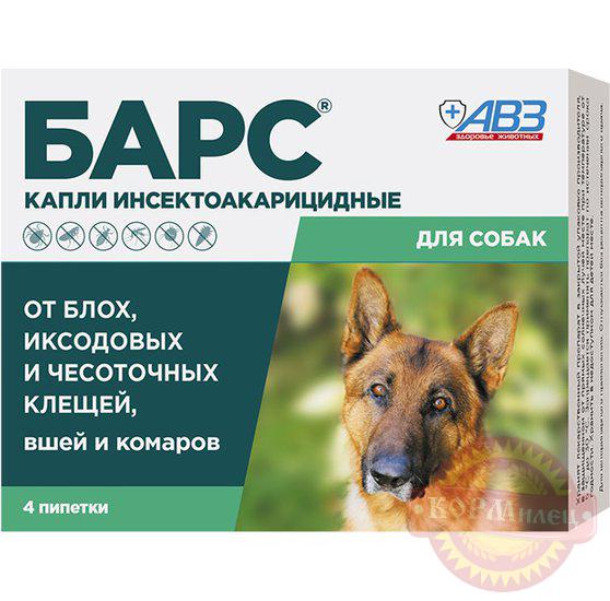 Барс капли против блох и клещей для собак (4 пипетки по 0,67мл).