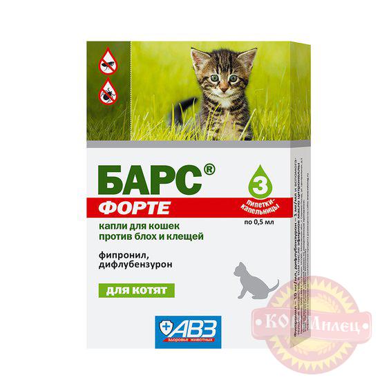БАРС ФОРТЕ – капли для котят против клещей, блох, вшей и власоедов упаковка 3 пипетки АВЗ (1 шт).