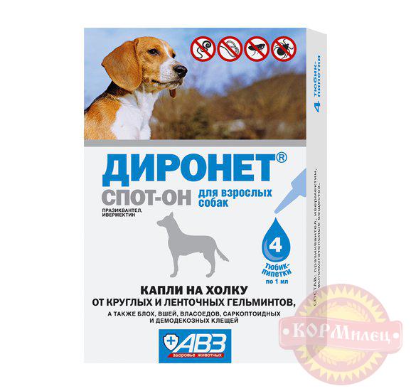 Капли на холку от круглых и ленточных гельминтов, а так же блох, вшей, власоедов, саркоптозных и демодекозных клещей. Применяют с целью лечения и профилактики кишечных нематодозов, цестодозов, энтомозов, отодектоза, саркоптоза, нотоэдроза и демодекоза.