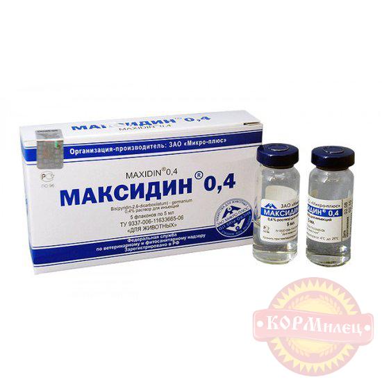 Максидин 0,4 (Maxidin 0,4) - раствор для инъекций применяется в качестве иммуномодулирующего средства у собак и кошек. По внешнему виду Максидин 0,4 представляет собой бесцветную прозрачную жидкость.По внешнему виду Максидин 0,4 представляет собой бесцветную прозрачную жидкость.