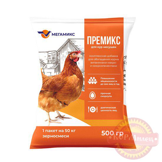 Назначение: Для обеспечения организма птицы жизненно важными витаминами, микроэлементами, и биологически активными добавками. Регулярное применение премикса позволяет улучшить иммунитет, повысить продуктивность (увеличить вес цыплят и повысить яйценоскость у кур-несушек), улучшить качество продукции, сократить затраты корма и ветеринарных препаратов.