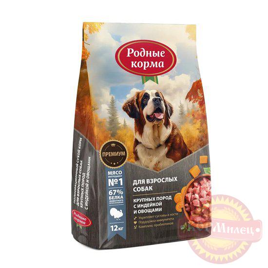 Для полноценной жизни собакам крупных пород требуется сбалансированное питание, которое будет включать в себя необходимые жиры, белки, углеводы, а также витамины и минеральные вещества. «Родные корма» для взрослых собак крупных пород — один из примеров высококачественных кормов для домашних питомцев. «РОДНЫЕ КОРМА» — это гарантия качества и забота о здоровье Вашего любимца. Высокое содержание мяса (МЯСО №1 в составе) соответствует биологическим потребностям организма, а функциональные добавки улучшают качество жизни питомца.