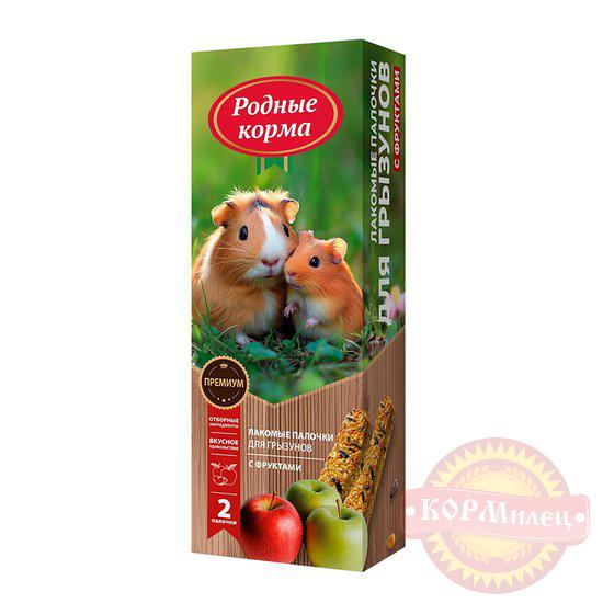 Лакомые палочки РОДНЫЕ КОРМА с фруктами для грызунов.