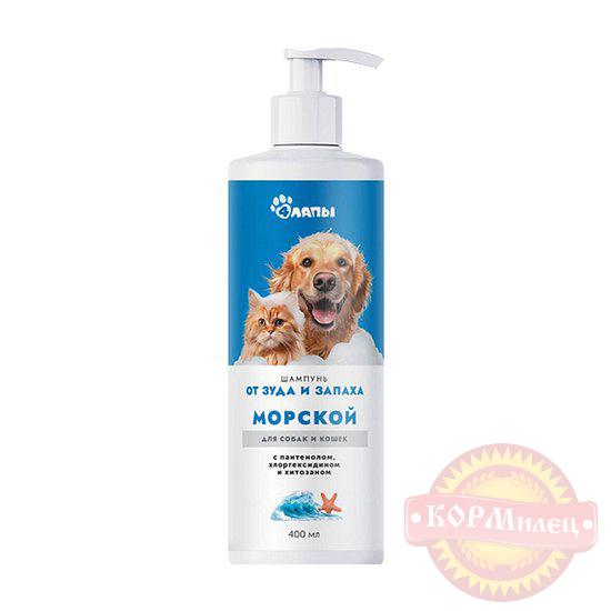 Шампунь «Морской» от зуда и запаха для собак и кошек с пантенолом, хлоргексидином и хитозаном.