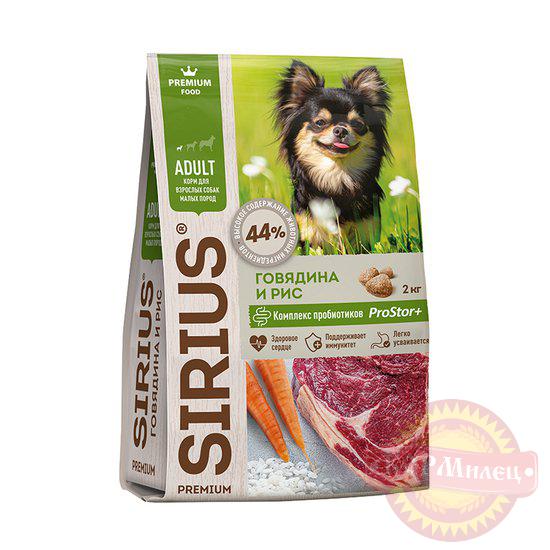 SIRIUS — сухой корм премиум-класса для полноценного ежедневного рациона взрослых собак маленьких пород.