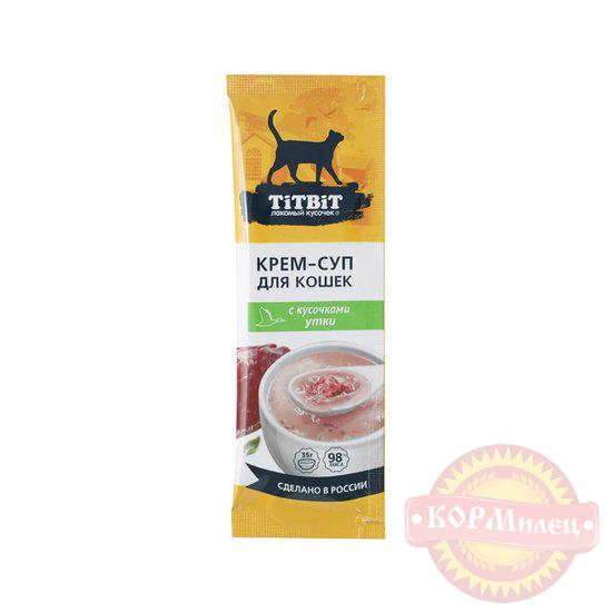 Крем-суп для кошек TITBIT – это специально разработанные вкусные и полезные продукты, которые состоят на 98 % из мясных ингредиентов, содержат кусочки свежего мяса и дополнительные полезные ингредиенты (таурин, морковь и петрушка для поддержки зрения, сердца, пищеварительной, половой и иммунной систем).