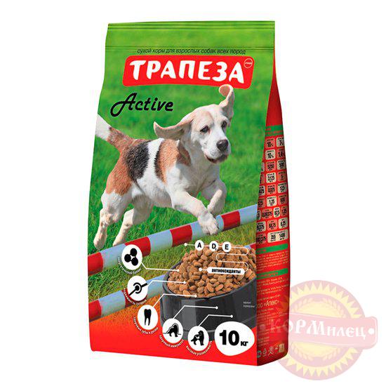 Сухой корм для собак ТРАПЕЗА ACTIVE — специально разработан для повседневного кормления активных собак всех пород с повышенными физическими нагрузками.