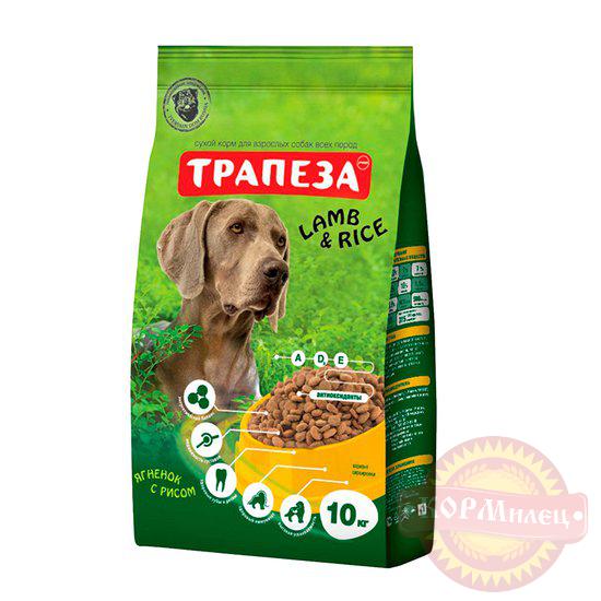 Корм "Трапеза ягненок с рисом"- полнорационный корм для повседневного кормления собак всех пород.