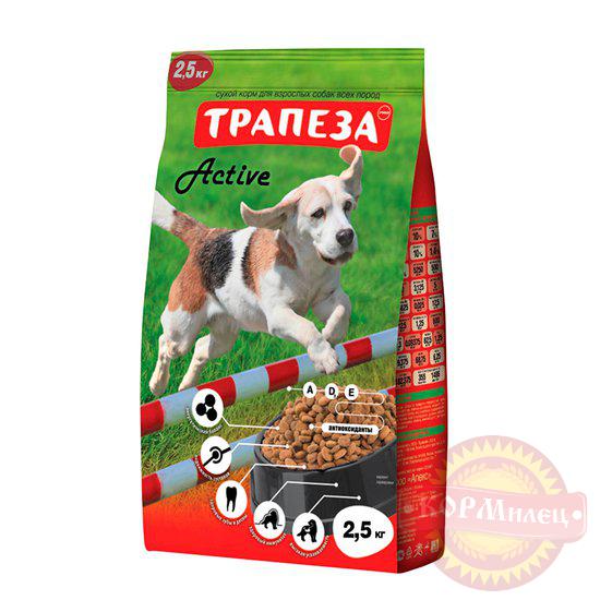 Сухой корм для собак ТРАПЕЗА ACTIVE — специально разработан для повседневного кормления активных собак всех пород с повышенными физическими нагрузками.