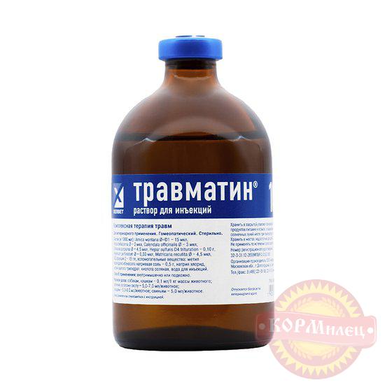 Травматин - комплексный гомеопатический препарат, который благодаря уникальному сочетанию компонентов обладает способностью благоприятно воздействовать на очаг воспаления, значительно ускоряя восстановление поврежденных тканей в организме животного.