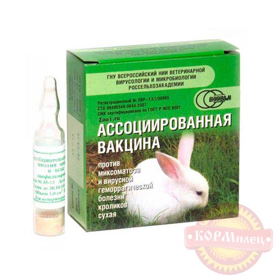 Вакцину ассоциированную против миксоматоза и вирусной геморрагической болезни кроликов изготавливают из штамма В-82 вируса миксомы кроликов и штамма В-87 вируса геморрагической болезни кроликов.