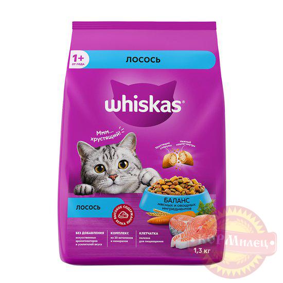 Вкусные подушечки с нежным паштетом. Побалуйте своего питомца полноценным сухим кормом Whiskas для взрослых кошек! Это сбалансированный рацион для здоровой и счастливой жизни Вашей кошки.