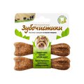 Деревенские лакомства Зубочистики Косточка жевательная для собак мелких пород до 10 кг Говядина набор 2 шт 36 г. Зубочистики - лучшие лакомства для чистки зубов, отлично снимают зубной налет, предотвращают появление зубного камня, и борятся с болезнями десен. Запантетованная структура позволяет сделать чистку максимально эффективной, сопоставимой с механической. Существенное содержание кальция укрепляет кости и зубы собаки. 100% натуральный состав и отсутствие любых искусственных ингридиентов способствует легкому усваиванию. Для собак менее 10 кг
