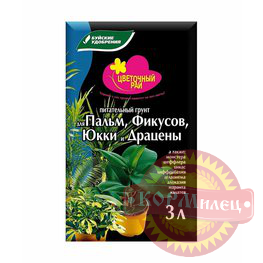 Грунт питательный "Цветочный рай" для пальм, фикусов, юкки, драцены 3л арт.00875
